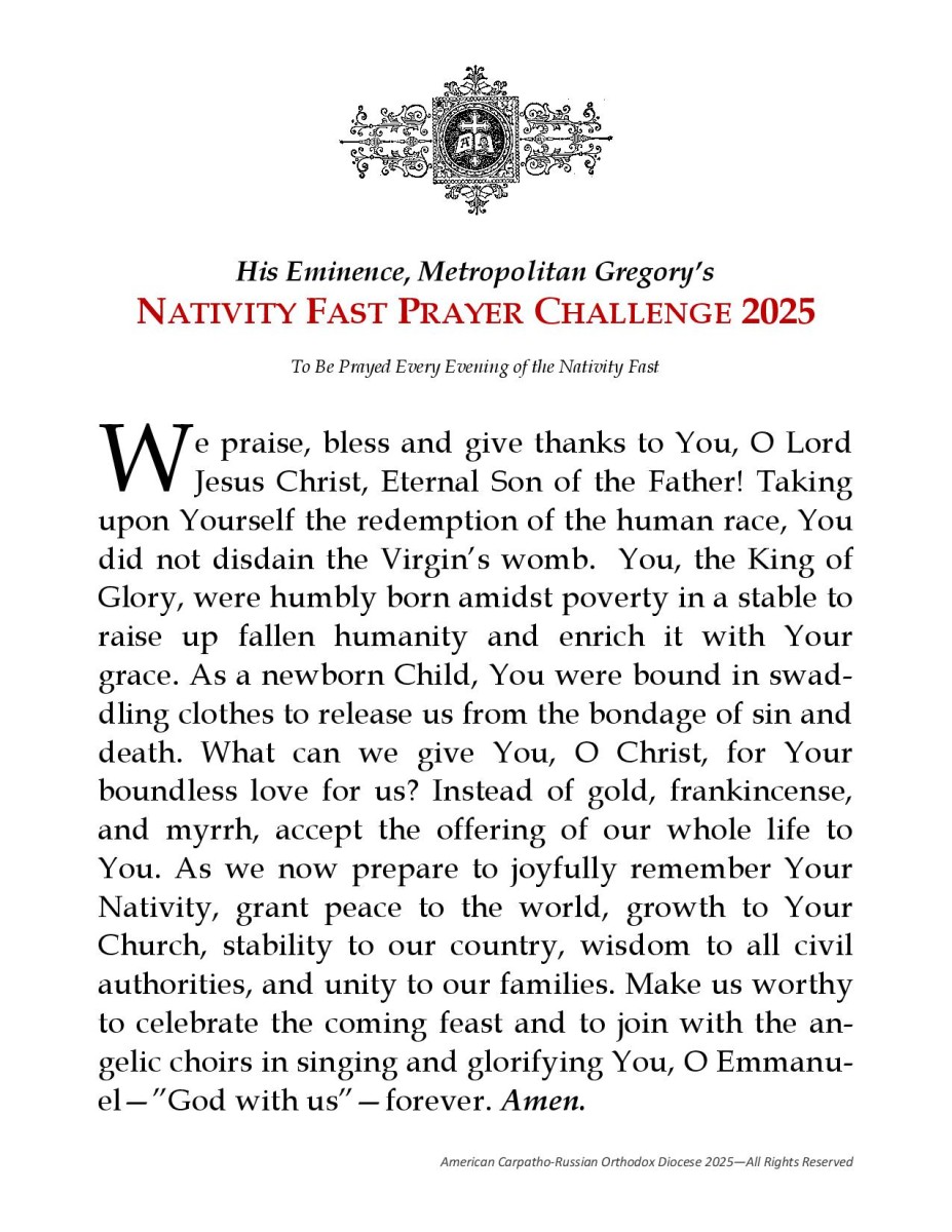 Schedule of His Eminence, Metropolitan Gregory For November 2025