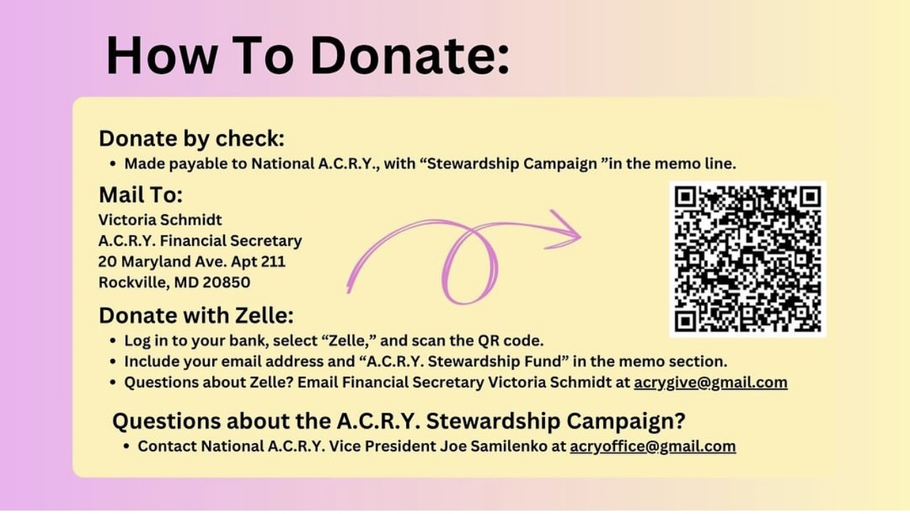 Checks should be made payable to National ACRY with Stewardship Campaign in the memo line.